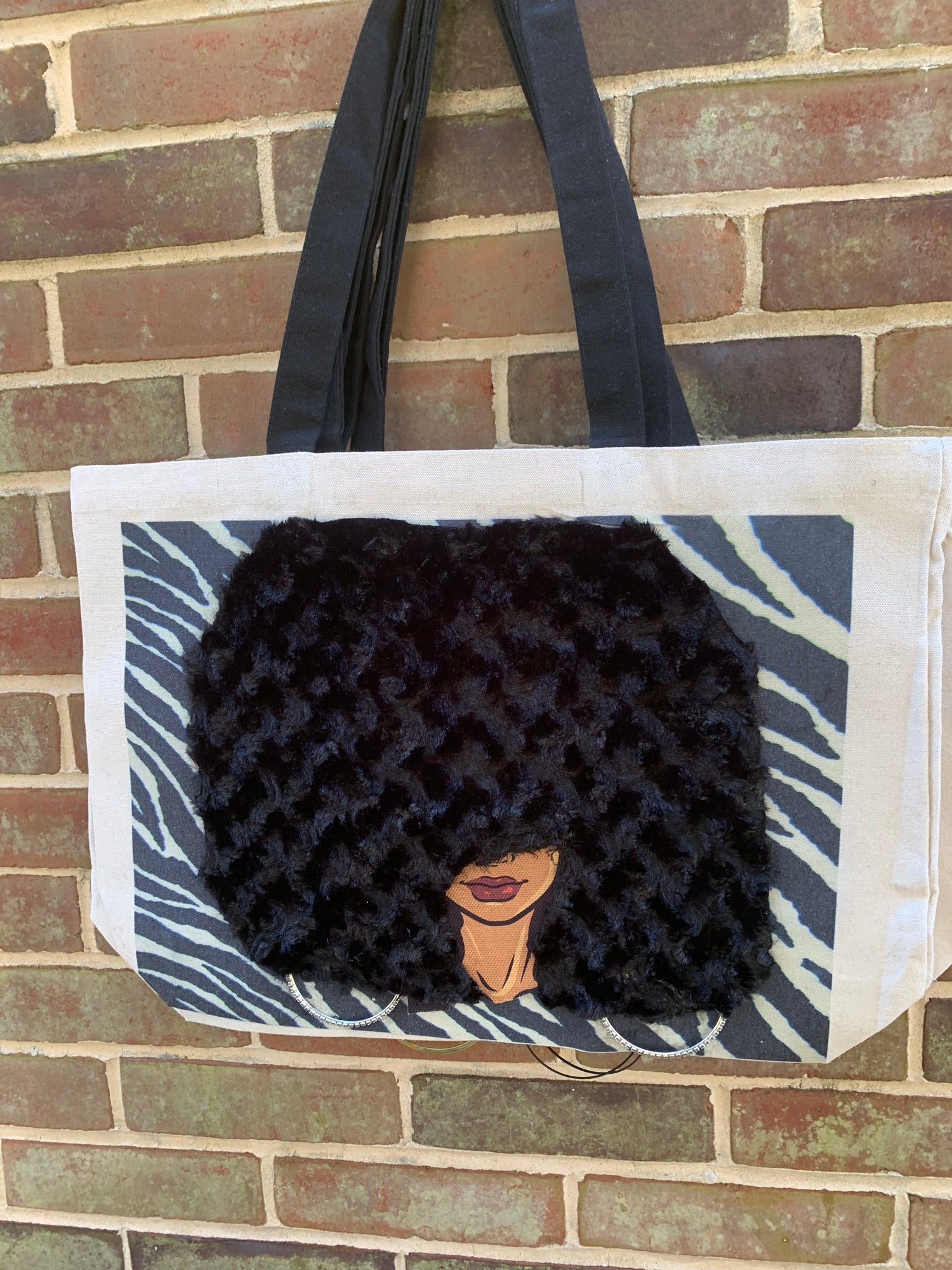 Textured Tote Bag, Afro American Woman Tote, Afro Puff, Canvas Bag