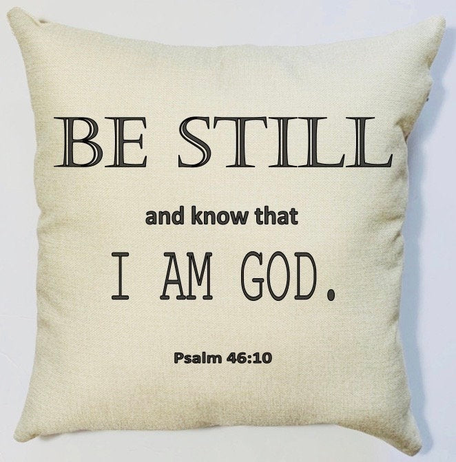 Be Still and Know Scripture Pillow Cover Inspiration Cover, Black and Beige Pillow Cover, Home Decor, Bible