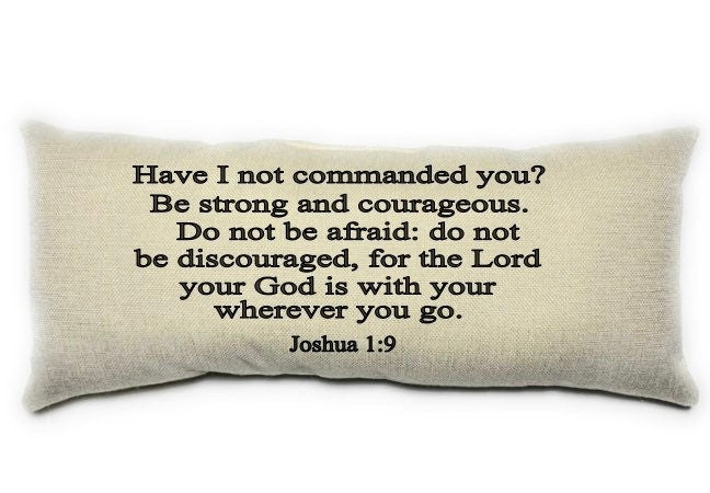 Be Strong and Courageous Joshua 1:9 Scripture, Christian, Lumbar Pillow, Black, Inspiration Cushion