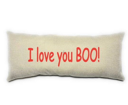 I Love You Boo, Love Pillow, Inspirational, Lumbar Pillow, Red and Beige Pillow, Home Decor
