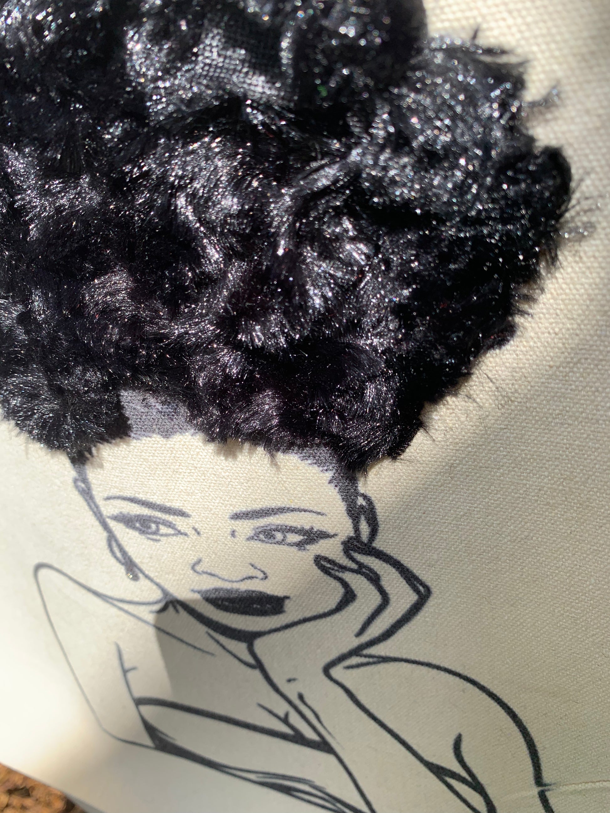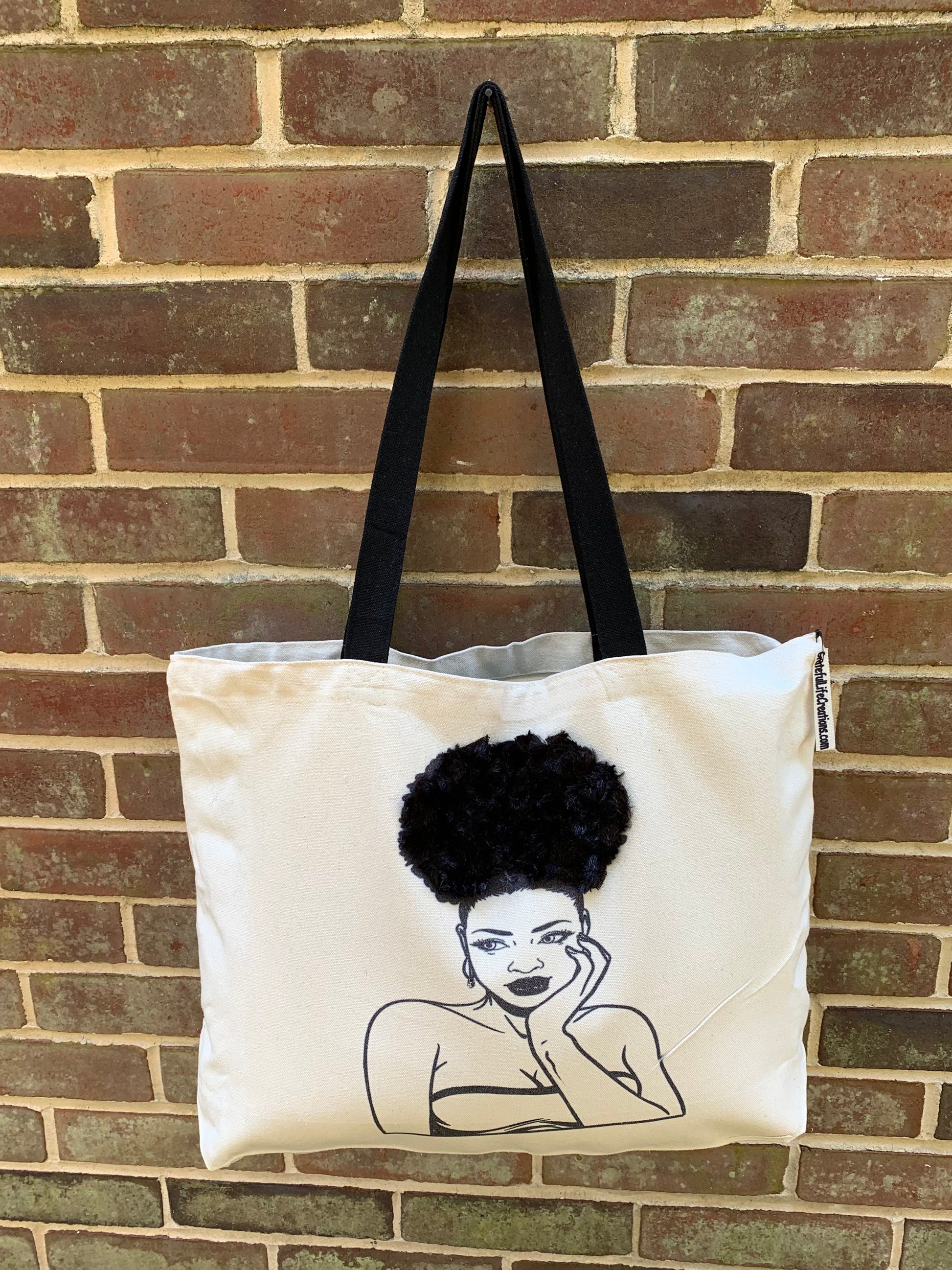 Textured Tote Bag, Afro American Woman Tote, Afro Puff, Canvas Bag